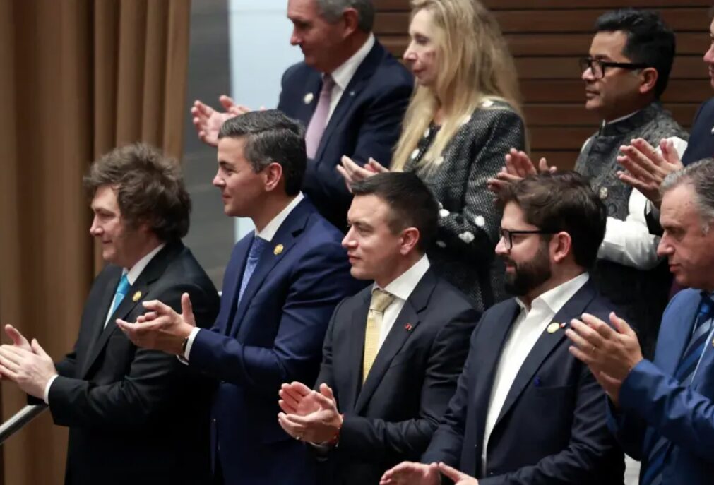 Noboa miró la investidura presidencial acompañado de sus homólogos Javier Milei (Argentina), Santiago Peña (Paraguay), Gabriel Boric (Chile) y Yamandú Orsi (Uruguay).